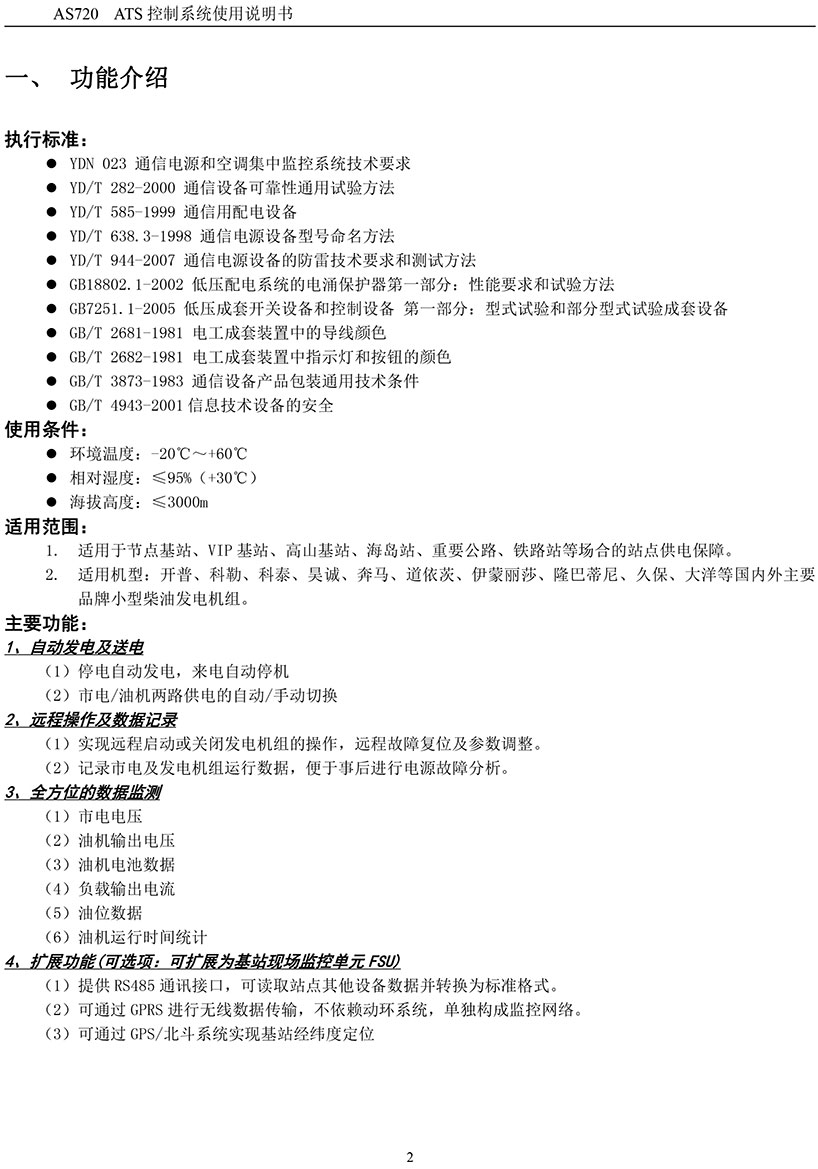 向前:基站發(fā)電控制箱AS820